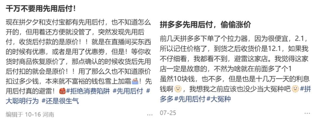 社交平台上好些避雷贴表示,“先用”的时候能抵扣的优惠券,到“后付”那会儿就失效了,或者专门候着大促下单,结果付款的时候大促已经结束,于是优惠券抢了白抢、大促等了白等,喜提原价。