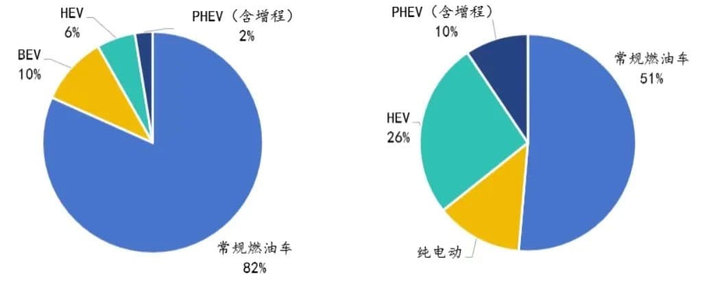 图12 左:受访者当前车辆动力类型;右:消费者未来购车的动力类型倾向