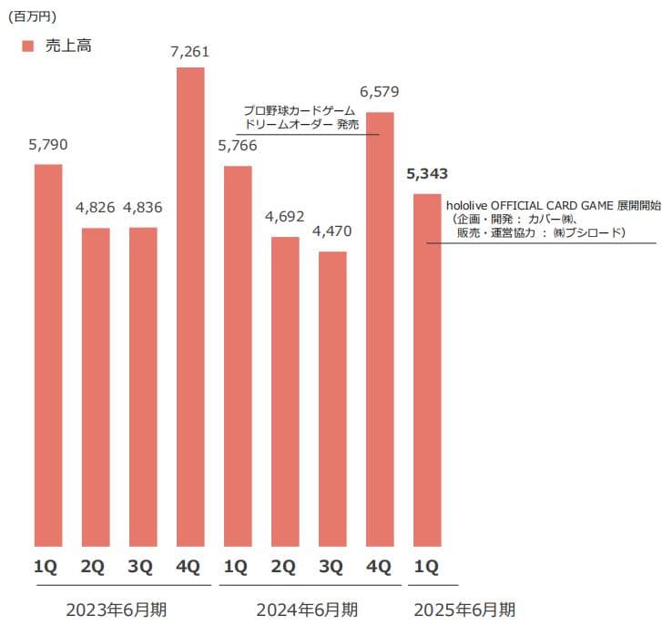《卡片战斗!! 先导者》新电视动画系列带动销售额增长,新发售的hololive OFFICIAL CARD GAME表现出色,《Weiss Schwarz》销售额依旧维持在较高水平,职业棒球卡牌TCG《DREAM ORDER》和《Shadowverse: EVOLVE》平稳过渡中。