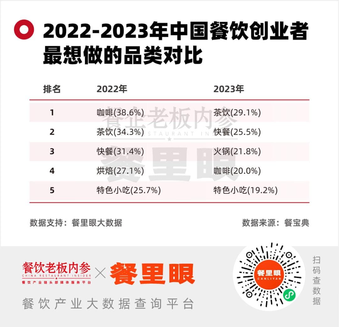 2022年,有34.3%的餐饮创业者最想做茶饮,尽管这一比例在2023年降至29.1%,但仍占比较高。