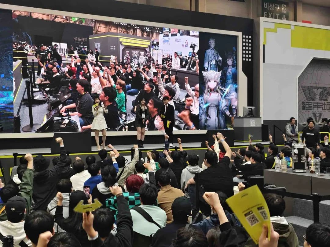 游戏的主舞台不算大,但其声量可能是全场最高的区域之一,我老远就能听到这帮韩国二次元的大叫。据说在韩国玩家圈子里,“海猫是神”已经成一个梗了。