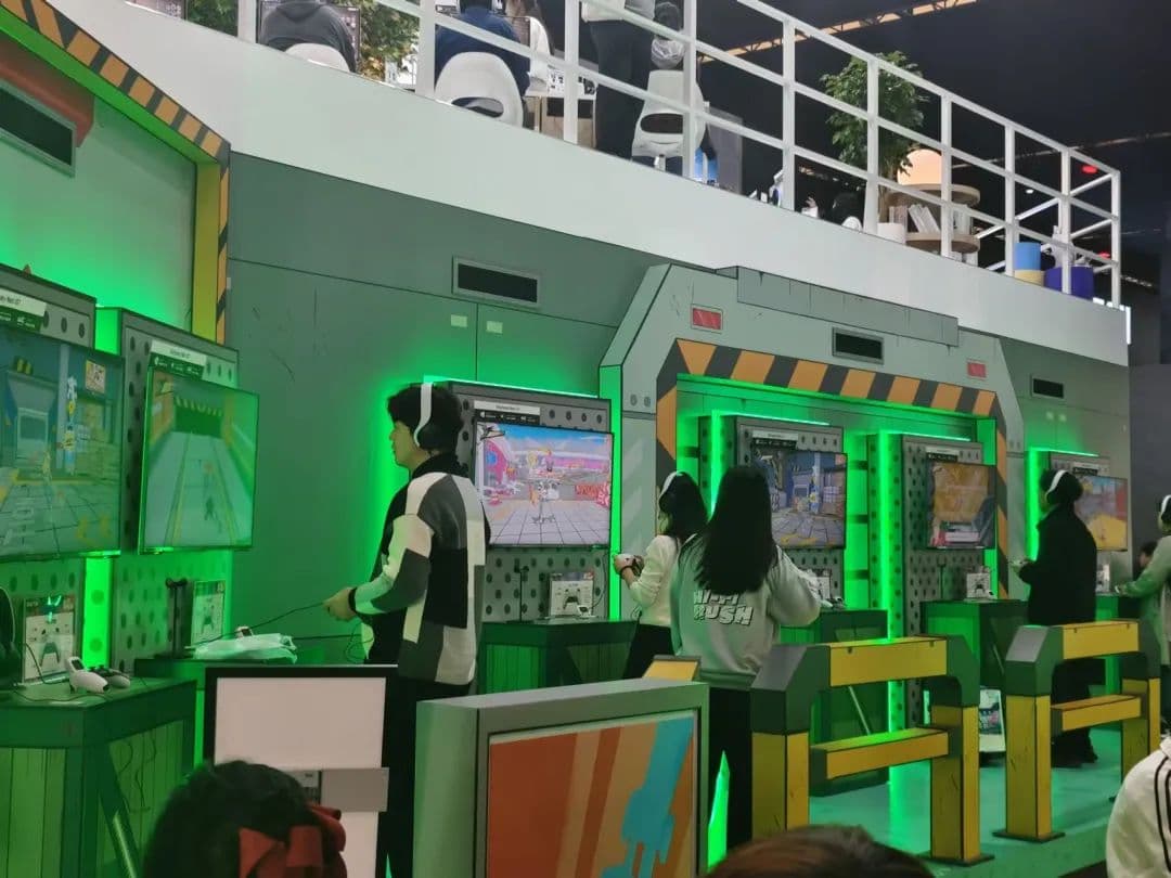 而这些公司的务实还体现在现场的搭建上:没有花里胡哨的各种异形物料和展区门头,除了用于互动的舞台区外,就是大面积的试玩设备,动不动就是一百多台。没有Show Girl,Coser数量也很少,和今年的CJ形成鲜明对比。