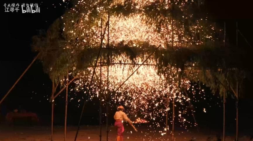 比如,博主“江寻千(九月)”早期的视频风格、拍摄方式,乃至穿衣打扮都与李子柒如出一辙,被视为李子柒的“平替”。2023年6月,“江寻千(九月)”发布了一条打铁花的视频,火爆全网,抖音账号30天涨粉215万,小红书账号一个月涨粉超30万。