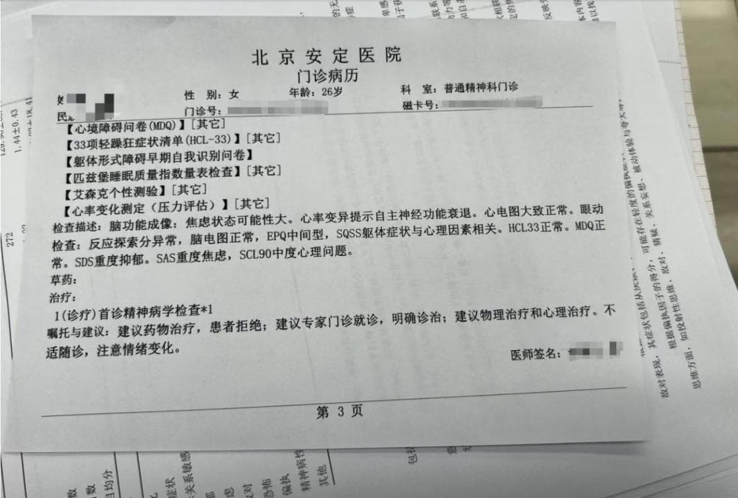 珊珊被确诊重度抑郁和重度焦虑(受访者供图)