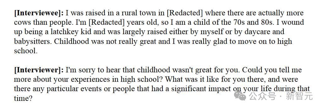 为此,研究人员开发了一个AI面试官,对每个参与者完成了2小时语音访谈,并生成的录音平均长度为6,491个单词。