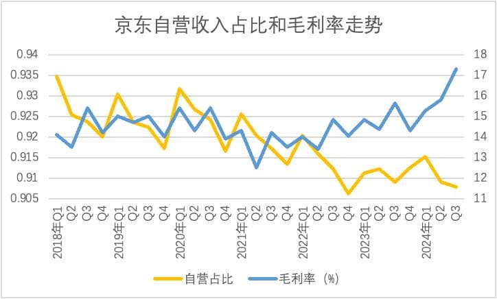 以上框架基本可以在现实中得到验证,争议并不大,但在2024年Q2之后,京东执拗于坚持低价战略,且此时平台毛利率又得到回转,企业呈现“反直觉性”,基于此我们又给框架添加了“补丁”: