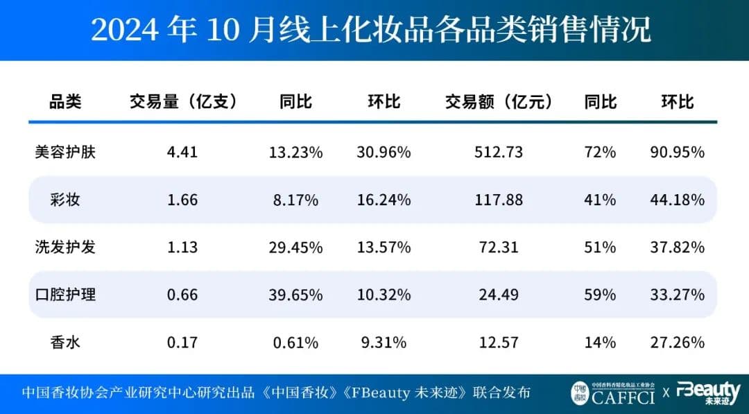 中国香妆协会产业研究中心:10月线上美妆交易额同比增长62.3%