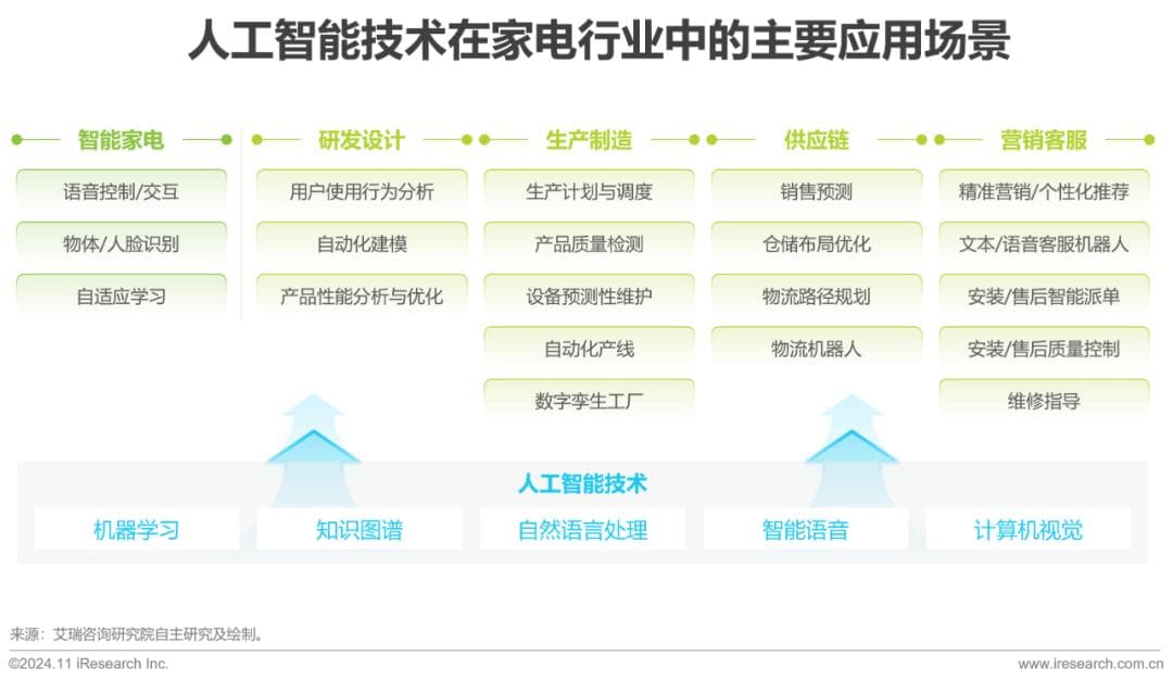 传统AI应用已贯穿家电企业经营流程,AI存量需求场景众多