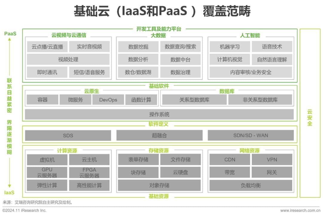 据初步调研,企业使用SaaS的随机性强、分散性广,因而在公有云范畴中,IaaS和PaaS(统称基础云)为重点研究范畴