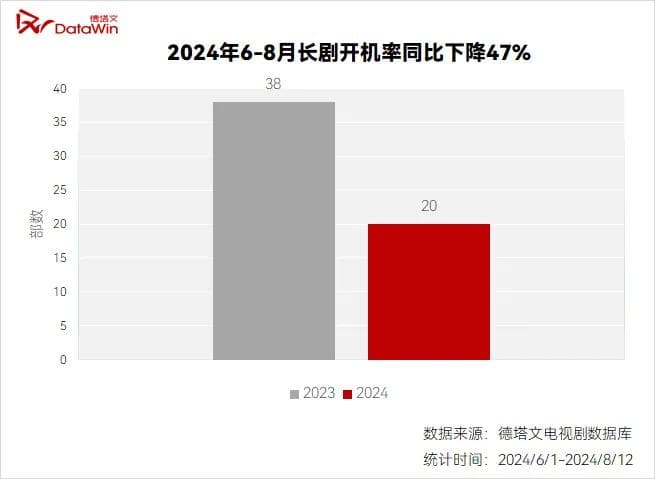 据德塔文统计数据显示,今年6-8月中旬,电视剧只开机了20部,相较去年同期38部,数量同比下降47%。