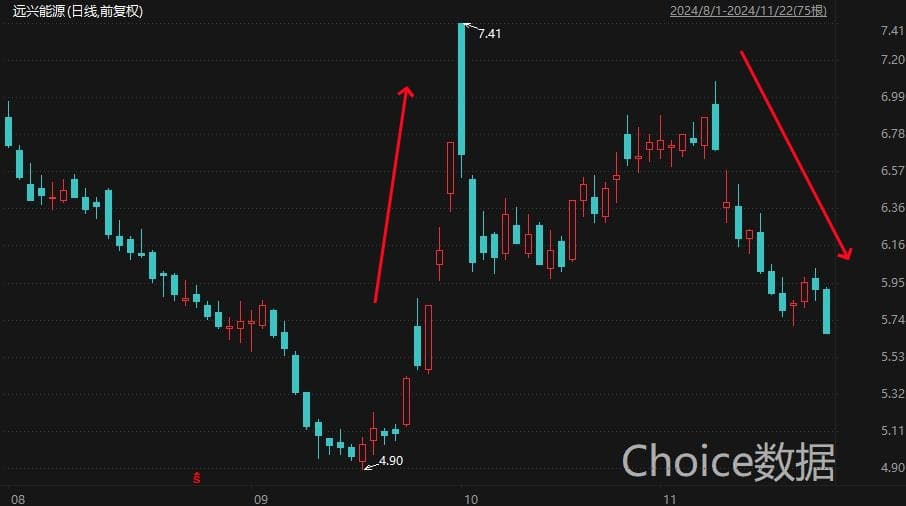二级市场方面,远兴能源公告被立案的下一个交易日(11月11日)收跌4.48%。