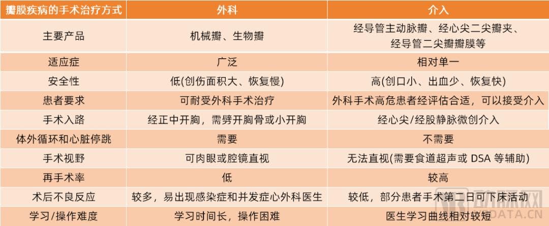 根据心脏瓣膜结构,瓣膜市场可细分为主动脉瓣、二尖瓣和三尖瓣市场。瓣膜疾病的手术治疗方式可分为介入手术和外科手术。
