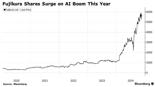 行情数据显示,为数据中心生产线缆的藤仓株式会社(Fujikura Ltd),是今年到目前为止日经225指数成份股中表现最好的公司——该公司股价在年内累计飙升了400%以上。
