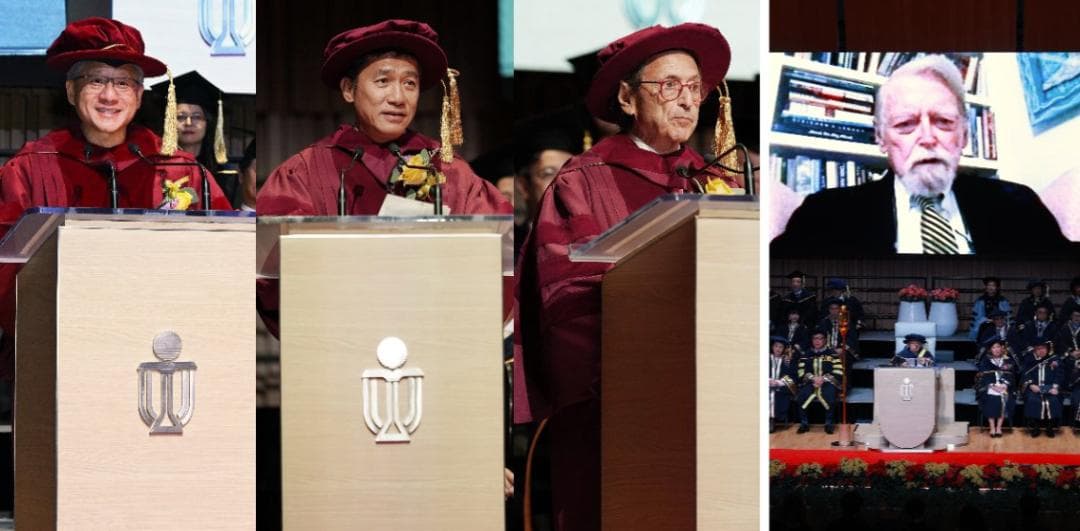 11 月 23 日,香港科技大学举行了今年度的学位颁授典礼。英伟达创始人和 CEO 黄仁勋又新增一个荣誉工程学博士头衔,与他一同获得荣誉博士学位的还有著名影星梁朝伟、2013 年诺贝尔化学奖得主 Michael Levitt、菲尔兹奖得主 David Mumford。