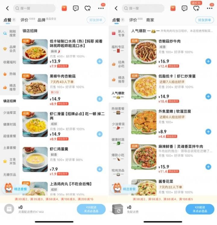 两家中式健康菜品牌菜品对比,来源:饿了么
