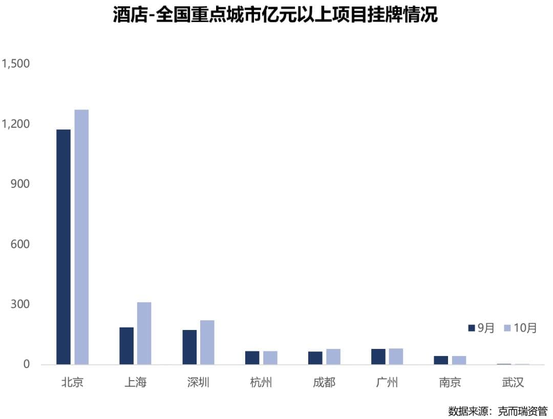 据克而瑞统计,截至2024年10月末,全国重点城市亿元以上独栋酒店项目挂牌总量较9月末增加16.1%,增幅创年内新高。