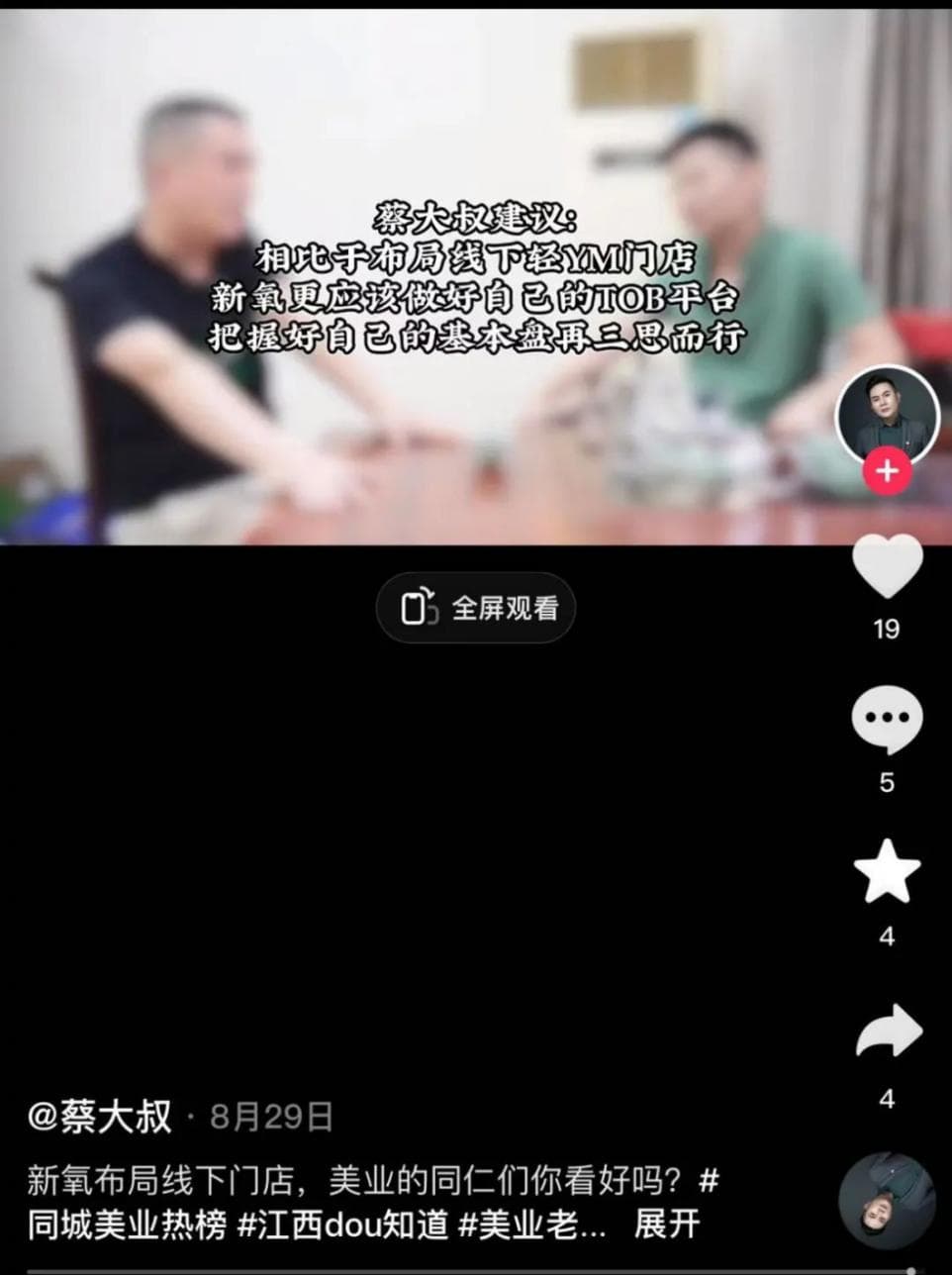 一名简介为“25年资深美业人”的自媒体博主“蔡大叔”建议:“相比于布局线下轻医美门店,新氧更应该做好自己的TO B平台,把握好自己的基本盘再三思而后行。”
