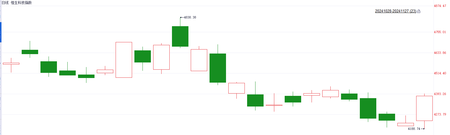 值得注意的是,恒生指数和科技指数均创11月以来最大涨幅。