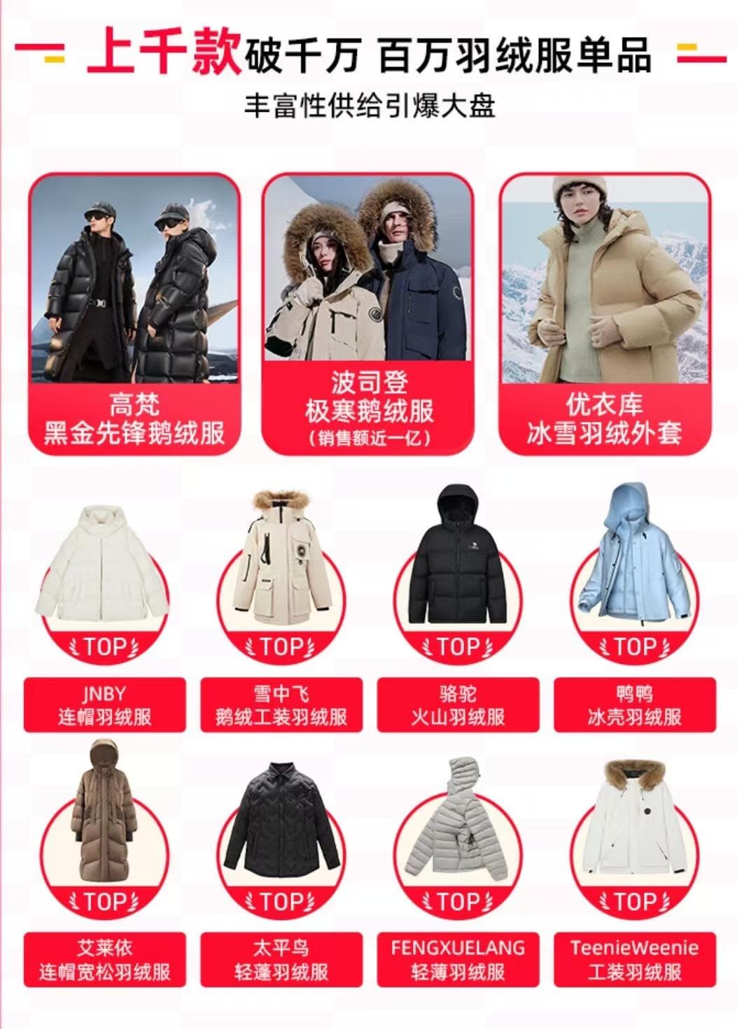 今年的热风也让平台、商家加大了在羽绒服侧的营销投入。请代言人成为羽绒服品牌的时尚单品。