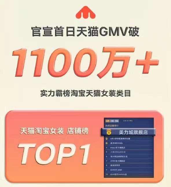 “代言人效应在官宣首日尤为显著”,以美力城为例,这个新兴品牌在官宣檀健次为代言人的第一天,天猫GMV就突破了1100万+,一举登上天猫淘宝女装店铺榜、交易榜、热销榜的首位。顶流明星的带货能力不容小觑,官宣当天,美力城各平台账号的评论区充斥着粉丝的晒单留言。