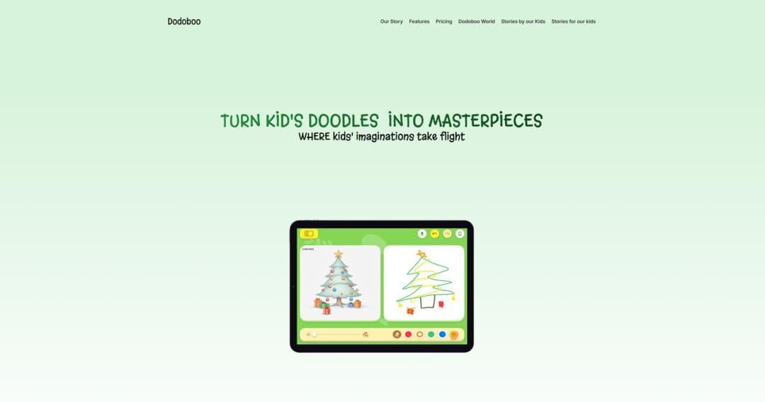 第一款产品是一款名叫Dodoboo的由AI驱动、上线海外的儿童绘画产品。它能够将儿童的简单涂鸦优化生成一幅精美完整的图画。