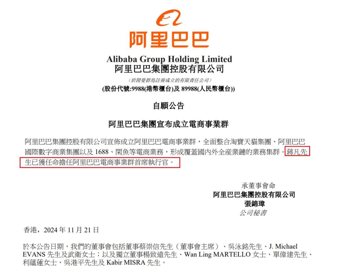 在蒋凡逐步重返核心层的同时,阿里巴巴的高层也经历了显著的变动。