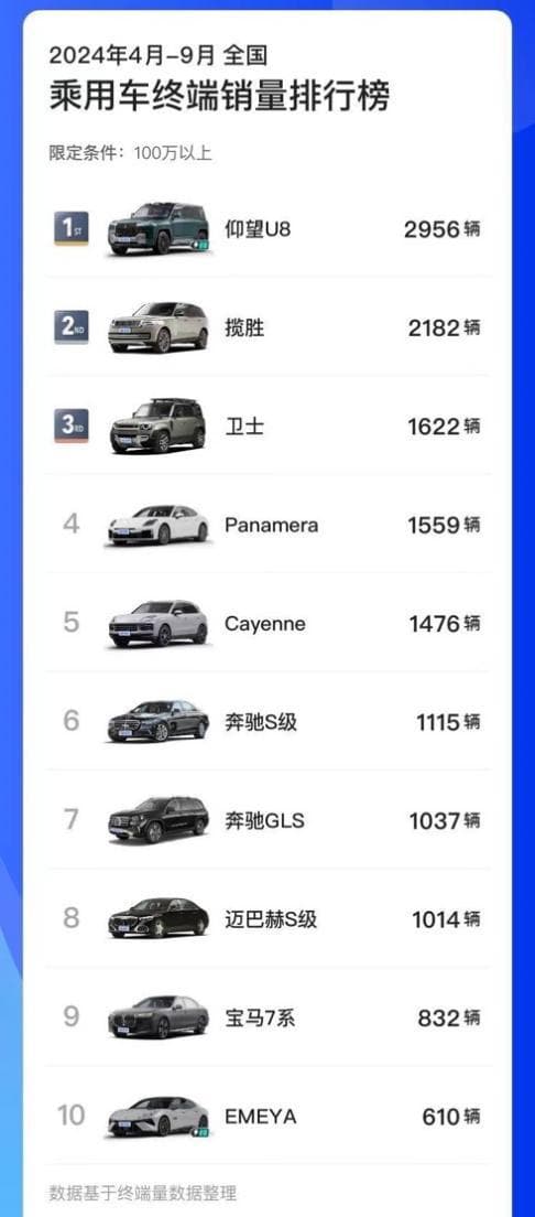 中国百万级豪车市场此前一直由外资品牌垄断,宾利、劳斯莱斯、迈巴赫、宝马7系、奔驰S级、保时捷等才是这一领域的顶级选手。