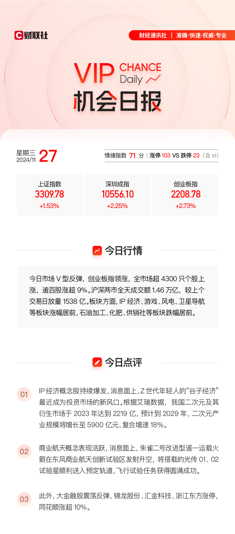 ,引用机构观点指出谷子全产业链完整布局的公司较少,IP和渠道是核心,大部分以二次元IP授权为主,竞争优势主要在渠道,看好“悦己”消费/谷子经济景气背景下相关投资机会,并提及金运激光、姚记科技,其在11月27日皆收获涨停。