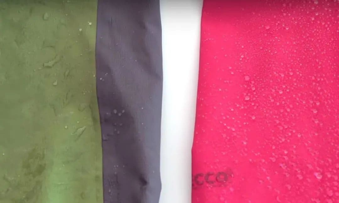 疏水涂层受损(左侧)与功能完好(右侧)的对比 | Mountain Equipment Company