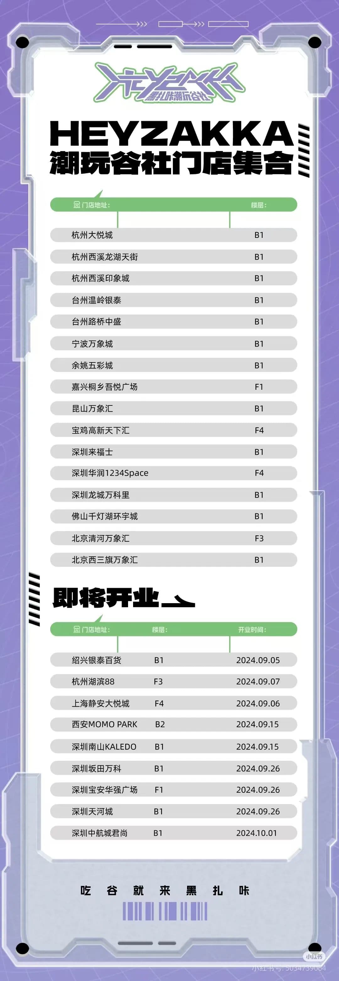 HEYZAKKA黑扎咔潮玩谷社是全国拥有100+家直营门店的潮流杂货品牌潮品挚尚在二次元领域推出的全新品牌,品牌于今年6月正式亮相,立志引领谷子店新零售。