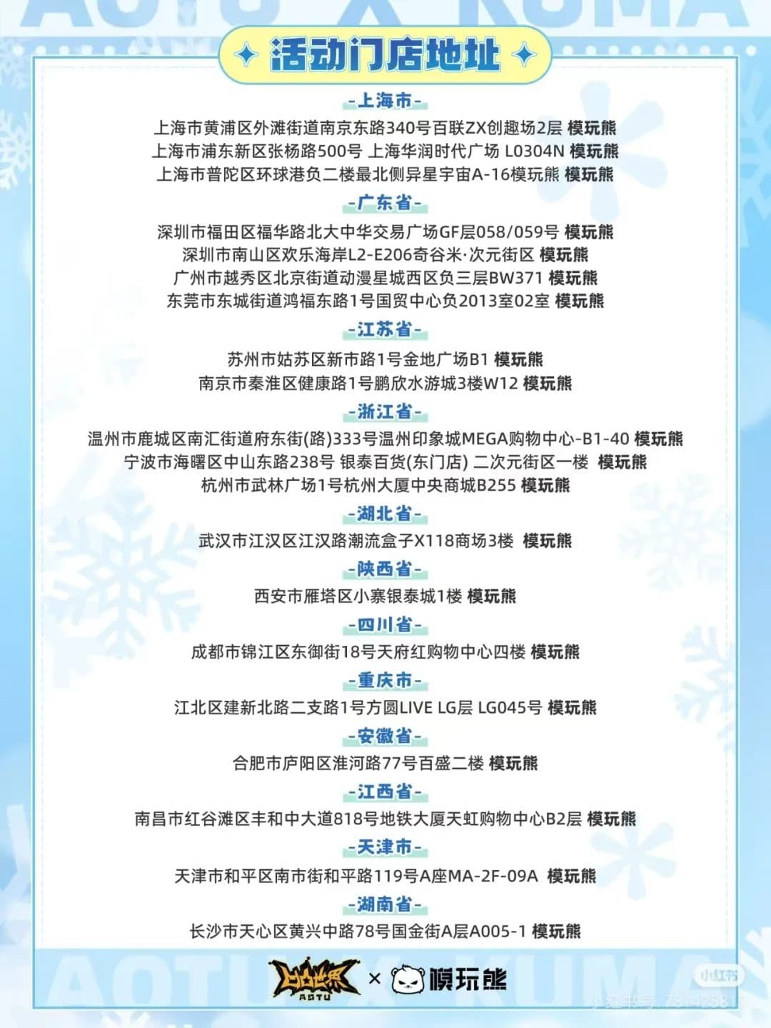 2024年开始,模玩熊加速线下布局,相继在全国各地开出首家店铺。根据其11月22日发布的与“凹凸世界”联名的活动门店及相关公开信息,模玩熊目前至少在全国17座城市开设了21家线下门店(包括卡牌店),并即将在12月于郑州探十里商场开设河南首店,也即年内至少有22家门店在营。