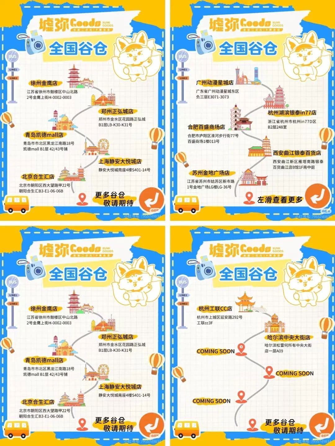 今年以来,墟弥Goods加速拓展线下门店,相继在上海新世界城、长沙黄兴广场、重庆时代天街、南京水游城、广州动漫星城、杭州湖滨银泰in77、西安曲江银泰百货、苏州金地广场、上海静安大悦城各城市二次元主要聚集商业体开设线下门店。根据官方11月22日发布的小红书显示,包括新开业的杭州工联CC店和哈尔滨中央大街店在内,其目前已在全国开出17家线下门店。