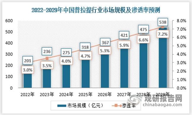 普拉提预计在2029年普及率将会翻倍达7.2%