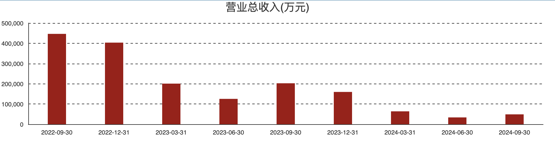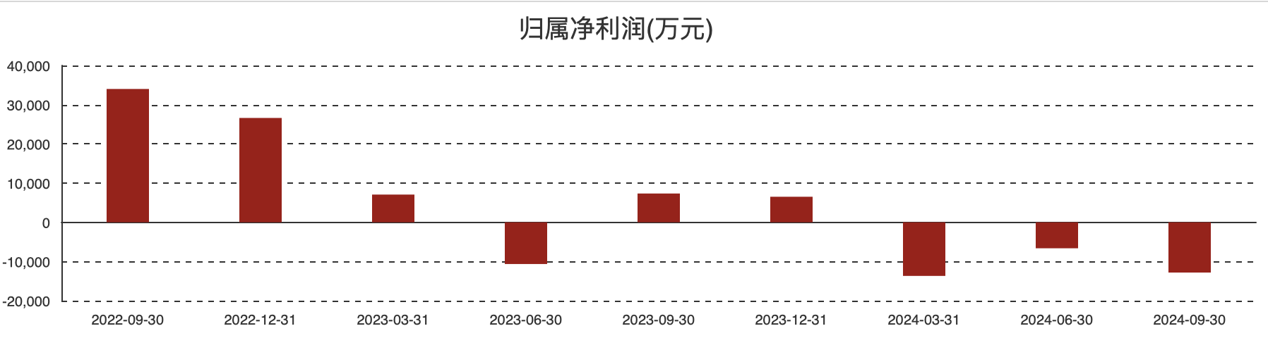 从该公司今年前三季度业绩来看,其实现营收14.59亿元,同比减少72.37%;归母净利润亏损3.31亿元,亏损程度同比扩大981.19%。该公司也从今年第一季度起,由盈转亏。