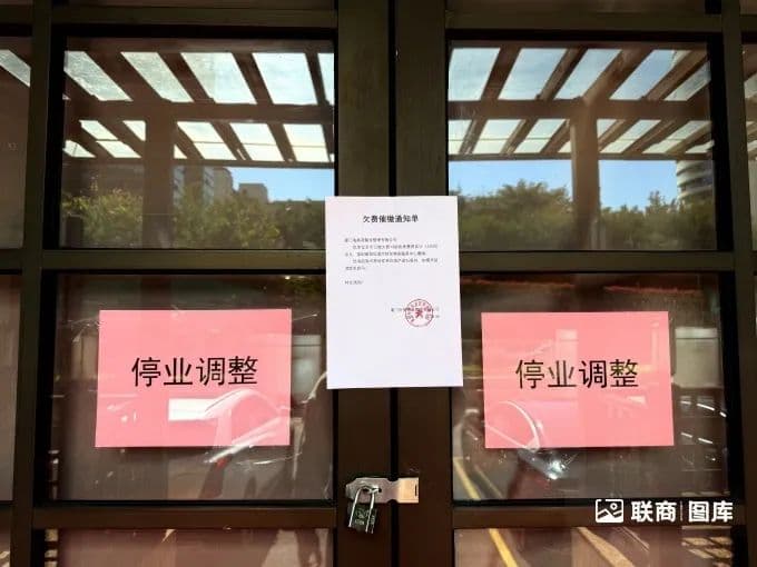 11月29日,《联商网》来到位于思明区湖滨北路的外贸大厦的海鼎荟厦门店,只见门店紧锁,内部一片漆黑,门口分别张贴着“停业整顿”和“欠费催缴通知单”的告示。