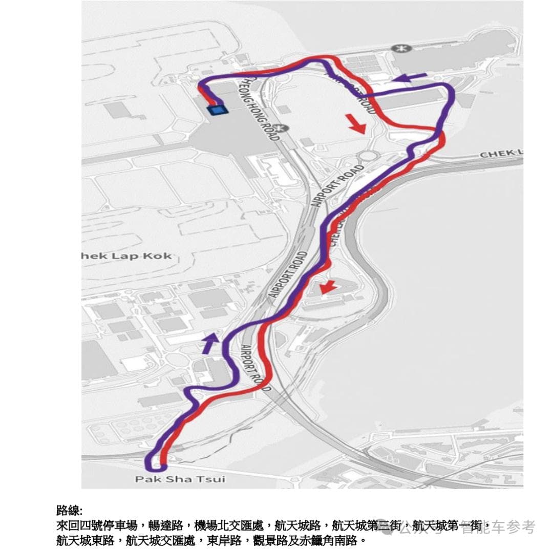 这2条路线实际是在香港国际机场旁边,地图APP显示,路线来回全程不到20公里。