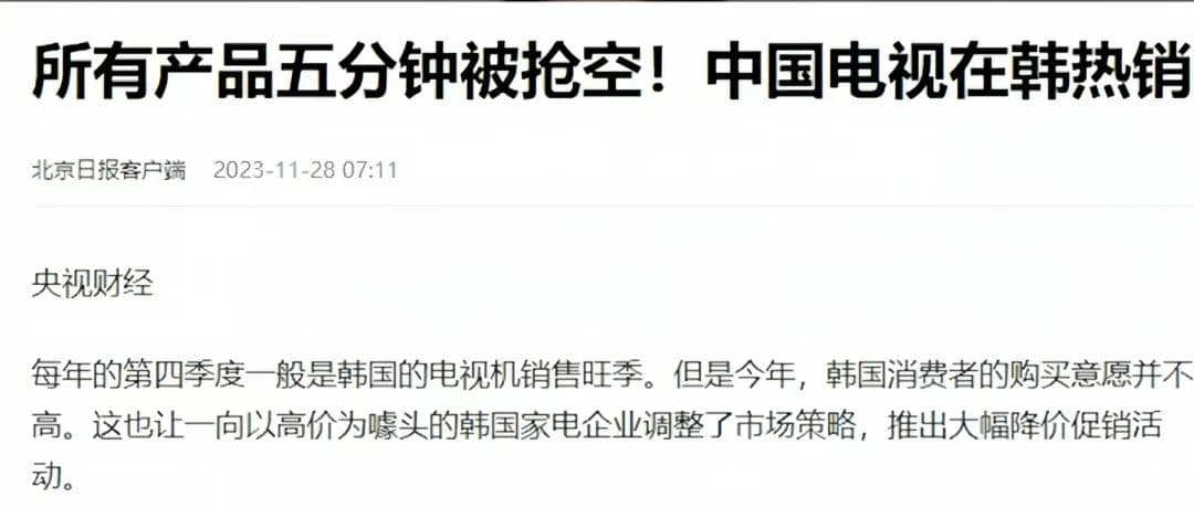 去年,有中国电视品牌通过韩国的电商平台卖高端电视, 所有的产品在五分钟内被抢购一空。