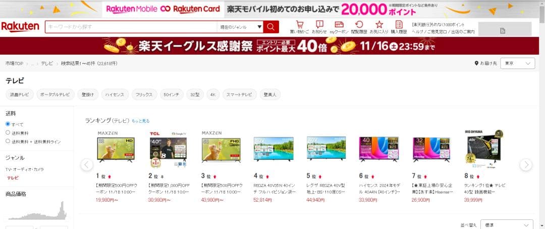 日本最大的本土购物网站“乐天Rakuten”上, 电视销量前10名中有6个是中国品牌。