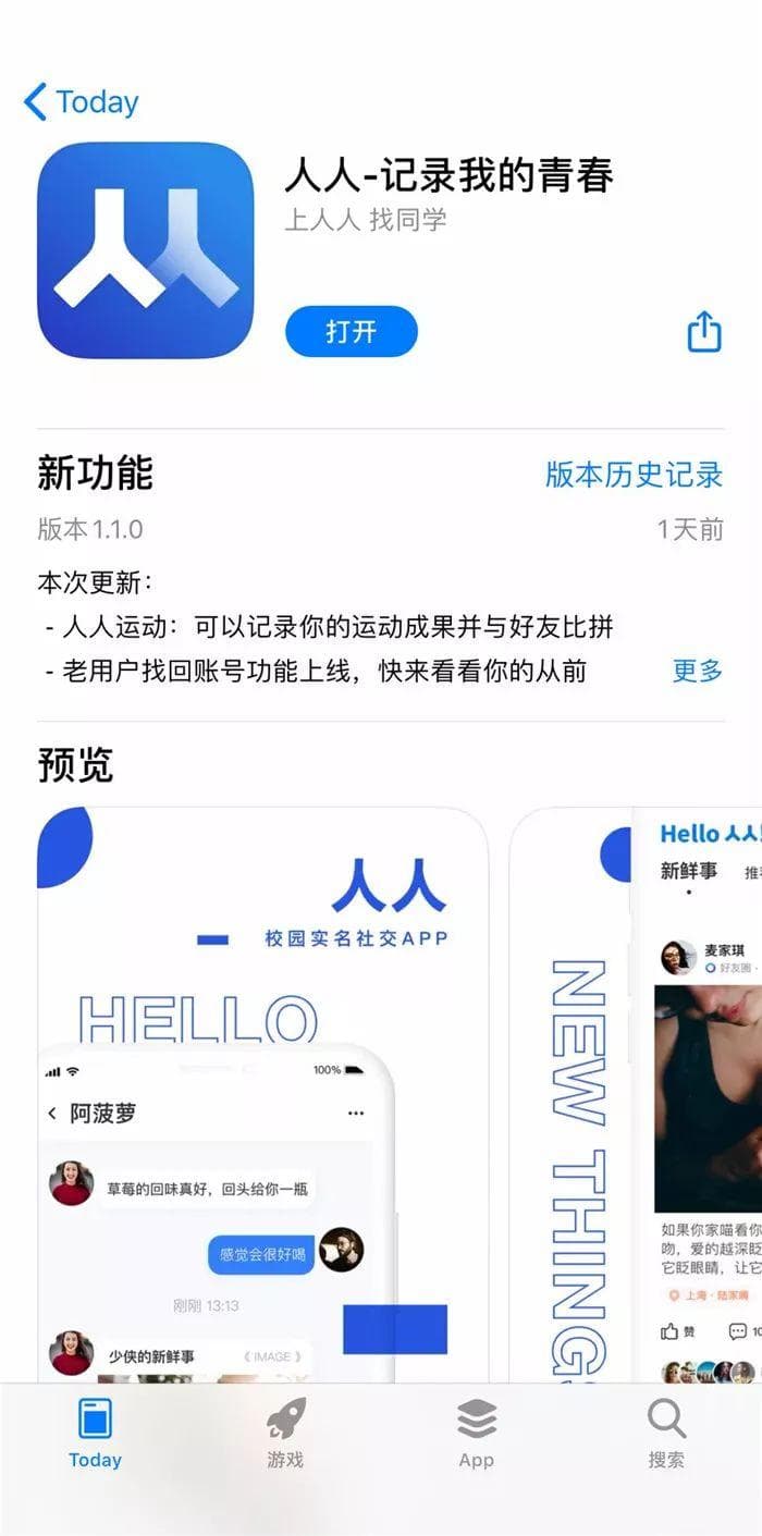 所以啊,人人网易主后,新团队就开启了重建计划,很快又上线了新的人人 App 。