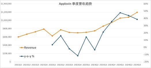 从下面Applovin的最近4年营收和增长趋势来看,2023年开始公司业绩开始起飞,好的业绩必然带来资本市场的关注。