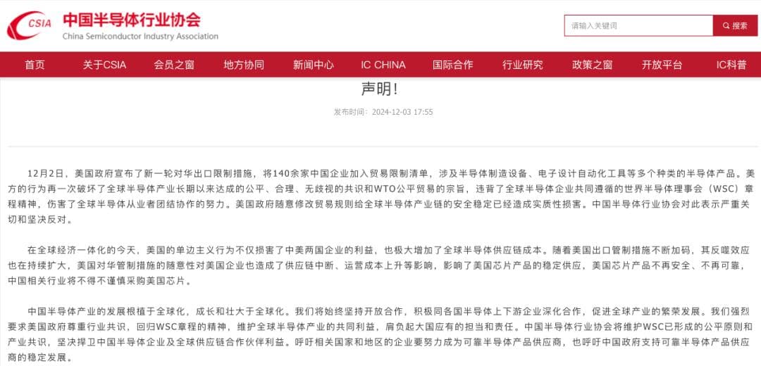 当地时间12月2日,美国商务部工业和安全局 (BIS) 公布了对华半导体出口管制措施新规。