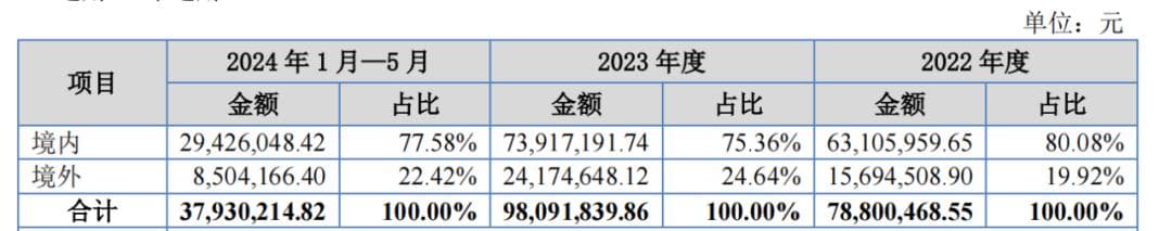 从收入构成来看,2022至2024年1-5月,安华生物境外收入分别为1569.45万元、2417.46万元、850.42万元,占营业收入的19.92%、24.64%、22.42%。不难发现,安华生物2023年境外收入较2022年明显增加。不过,安华生物也指出,若未来相关国家贸易政策变动导致摩擦加剧或出现限制性政策,可能影响出口业务,从而对公司经营业绩产生不利影响。