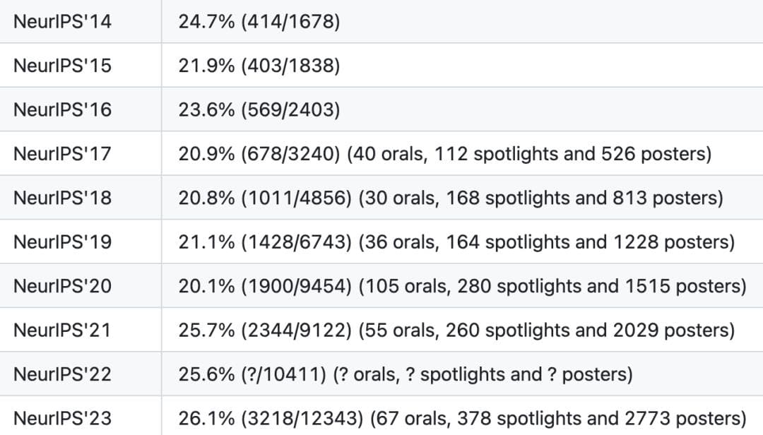 NeurIPS历年接收率