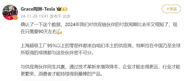 特斯拉将借款周期缩短到了90天,在行业看来是对供应商的诚意十足。