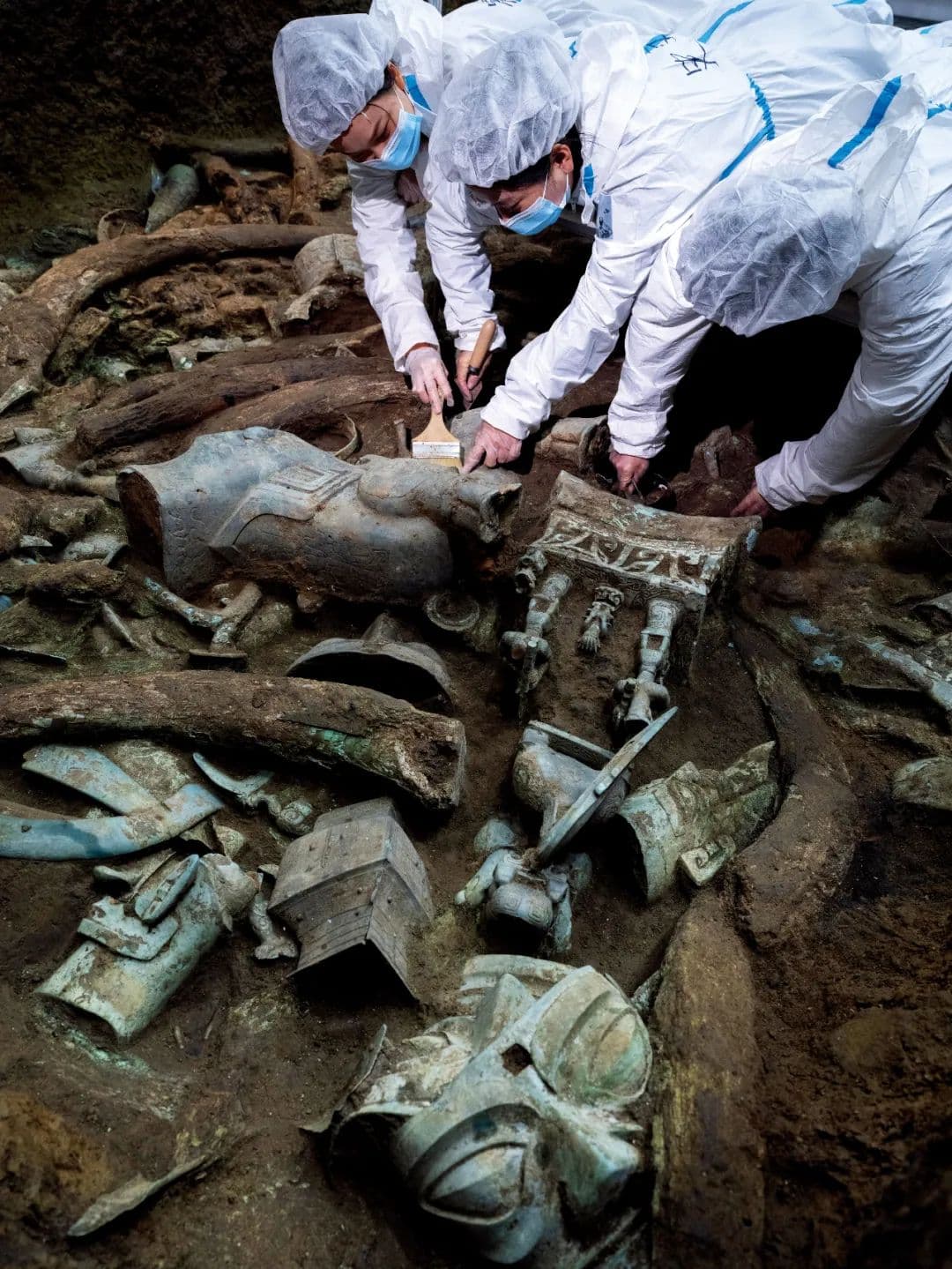 2020年至2022年,三星堆遗址祭祀区考古发掘在四川广汉启动,这是1986年之后对祭祀区的第二次发掘。再次发掘三星堆,比30多年前复杂许多。科技考古延长了人们的视力,考古人仿佛长了一双三星堆人梦寐以求的“纵目”。坑里的一切都是解谜线索,包括土壤,土壤被打包收藏起来,通过新的科技手段会从中不断看到新的东西。