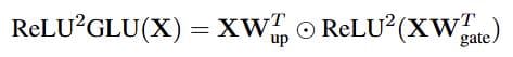 对于FFN,这里采用squared ReLU和门控线性单元(GLU)来进一步提高激活的稀疏性: