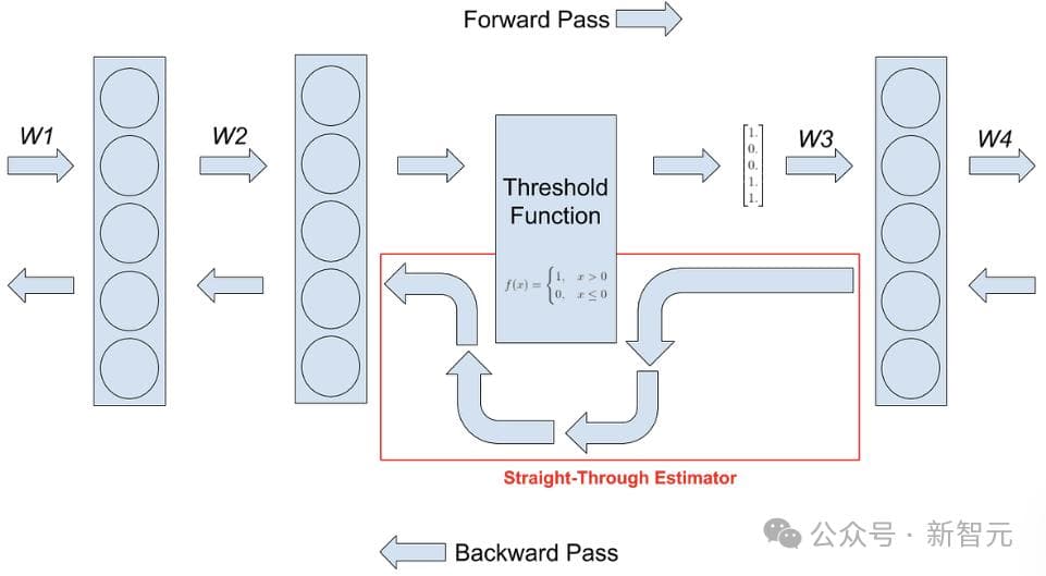 这里直接绕过了不可微函数,包括反向传播过程中的量化函数和topK稀疏函数。对于混合精度训练,保持全精度latent weight来累积参数更新。