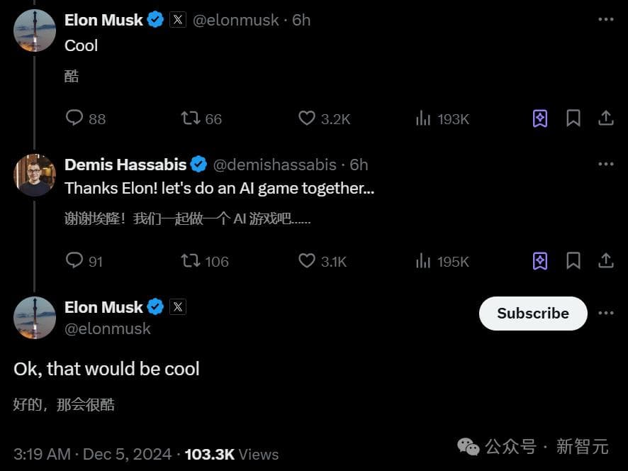 随后,Hassabis现身评论区,邀请马斯克和谷歌DeepMind一起做AI游戏,马斯克高兴应约。
