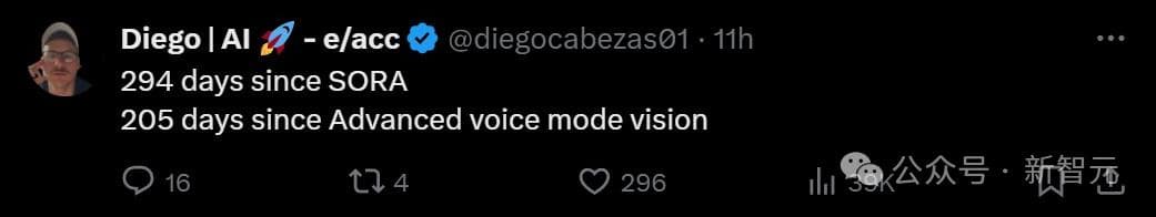 有人敲锣提醒:Sora已经发布294天了,高级语音模式已经发布205天了,我们什么时候能用到啊?