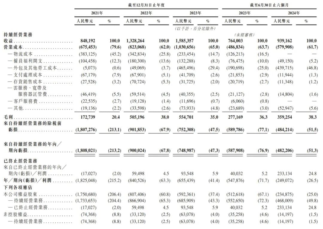 多点数智在2021年、2022年、2023年经调整亏损分别为9.59亿元、2.96亿元、1.4亿元。多点DMALL在2024年上半年经调整亏损为5639万元,上年同期的经调整亏损为1.44亿元。